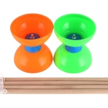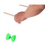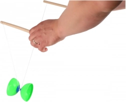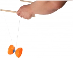 Pevné plastové misky odolajú nárazom, drevené paličky poskytujú istý úchop a prirodzený cit pri ovládaní diabola.
