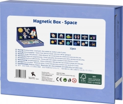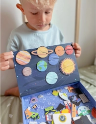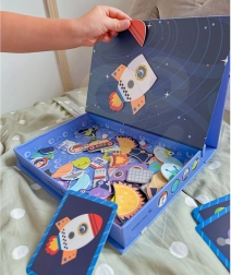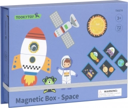 Magnetická skladačka od TOOKY TOY je fascinujúca vzdelávacia hračka, ktorá deti prevedie nekonečnými vesmírnymi svetmi. Set obsahuje 12 rôznych vesmírnych vzorov, každý rozdelený na štyri až päť magnetických puzzlí. Vďaka magnetickým nálepkam môžu deti ľahko skladať svoje vlastné vesmírne scény na priloženej magnetickej tabuli.