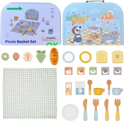 Objavte čaro rolovej hry s týmto krásnym dreveným piknikovým setom v kufríku. Deti si môžu krájať ovocie, pripravovať toasty a raňajky a servírovať nápoje. Kvalitné drevené prevedenie, bezpečné farby a praktický kufrík robia z tejto sady skvelého spoločníka doma aj na cesty. Podporuje jemnú motoriku, kreativitu a spoločenské zručnosti.