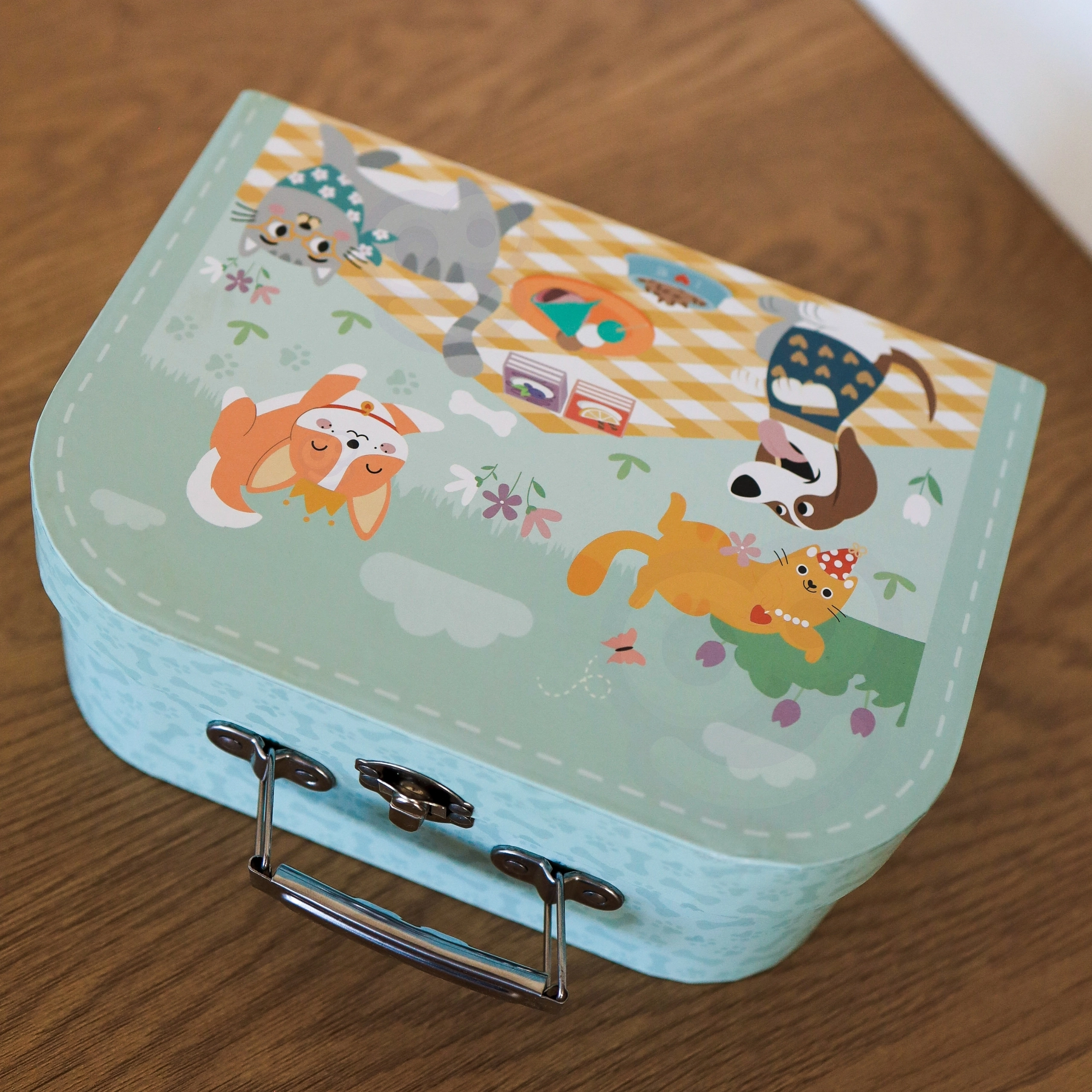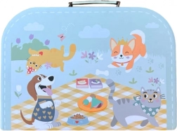 Štýlový tyrkysový kufrík s kovovou rúčkou a zapínaním udrží všetky dieliky pokope. Ľahko sa prenáša na výlety aj na návštevy.