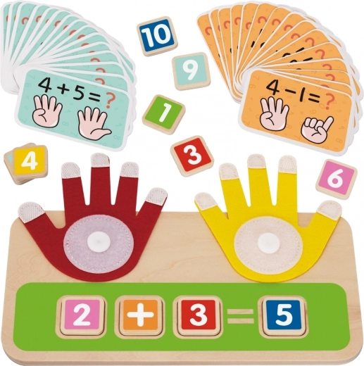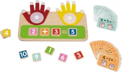 - Drevená podstava s dvoma pohyblivými rukami (červenou a žltou), ktoré simulujú počítanie na prstoch