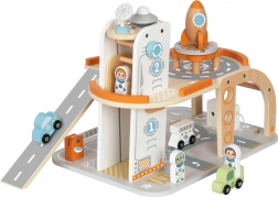 Táto premyslene navrhnutá drevená hračka prenesie deti do sveta kozmických misií. Viacposchodová konštrukcia s prehľadným značením dráh, pohyblivým výťahom a dlhou zjazdovou rampou vyzýva k príbehom plným štartov, pristátí a servisných úloh. Balíček dopĺňajú figúrky astronautov, pristávacia plošina s raketou, rover a ďalšie doplnky pre realistickú hru.