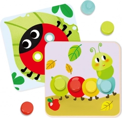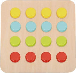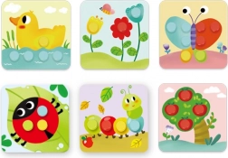 Táto skladačka obsahuje 16 farebných kociek a 6 tabúľ so zvieratkami. Kocky sa umiestňujú podľa tvaru, aby sa dokončil obrázok. Deťom rozvíjajú zrakovú koordináciu.