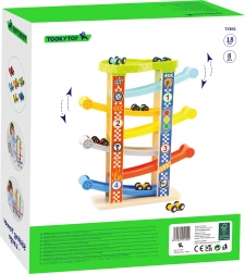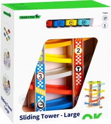 Drevená šmýkačka od Tooky Toy je ideálna hračka, ktorá pomáha deťom rozvíjať dôležité zručnosti zatiaľ čo sa hrajú. Sledujte, ako autíčka sa kĺzajú dole a vyberte sa na dobrodružstvo plné rýchlosti a zábavy.