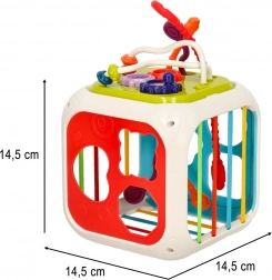 Kocka ponúka množstvo aktivít, ktoré podporujú zmyslový vývoj a koordináciu očí a rúk.
