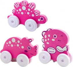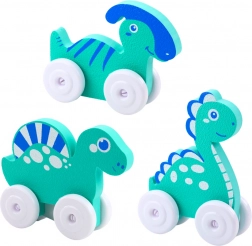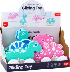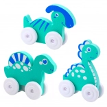 Farebné dinosaury na kolieskach sú navrhnuté pre zábavu detí. Majú priateľský vzhľad, zaoblené tvary a pastelové farby, ktoré podnecujú predstavivosť. Vďaka kolieskam sa hračky ľahko pohybujú a ľahká konštrukcia umožňuje dieťaťu ich ľahko tlačiť a vziať si ich kamkoľvek.