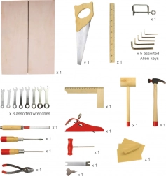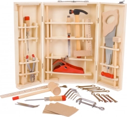 Drevený kufrík s náradím obsahuje všetko, čo mladý kutil potrebuje. Obsahuje skrutkovače, píly, kľúče, kladivá a mnoho ďalších nástrojov. Vyrobené z kvalitných materiálov a spĺňa európske bezpečnostné normy.