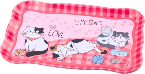 Kovová sada na čaj pre deti s motívom mačičiek, ružová, 15 ks
