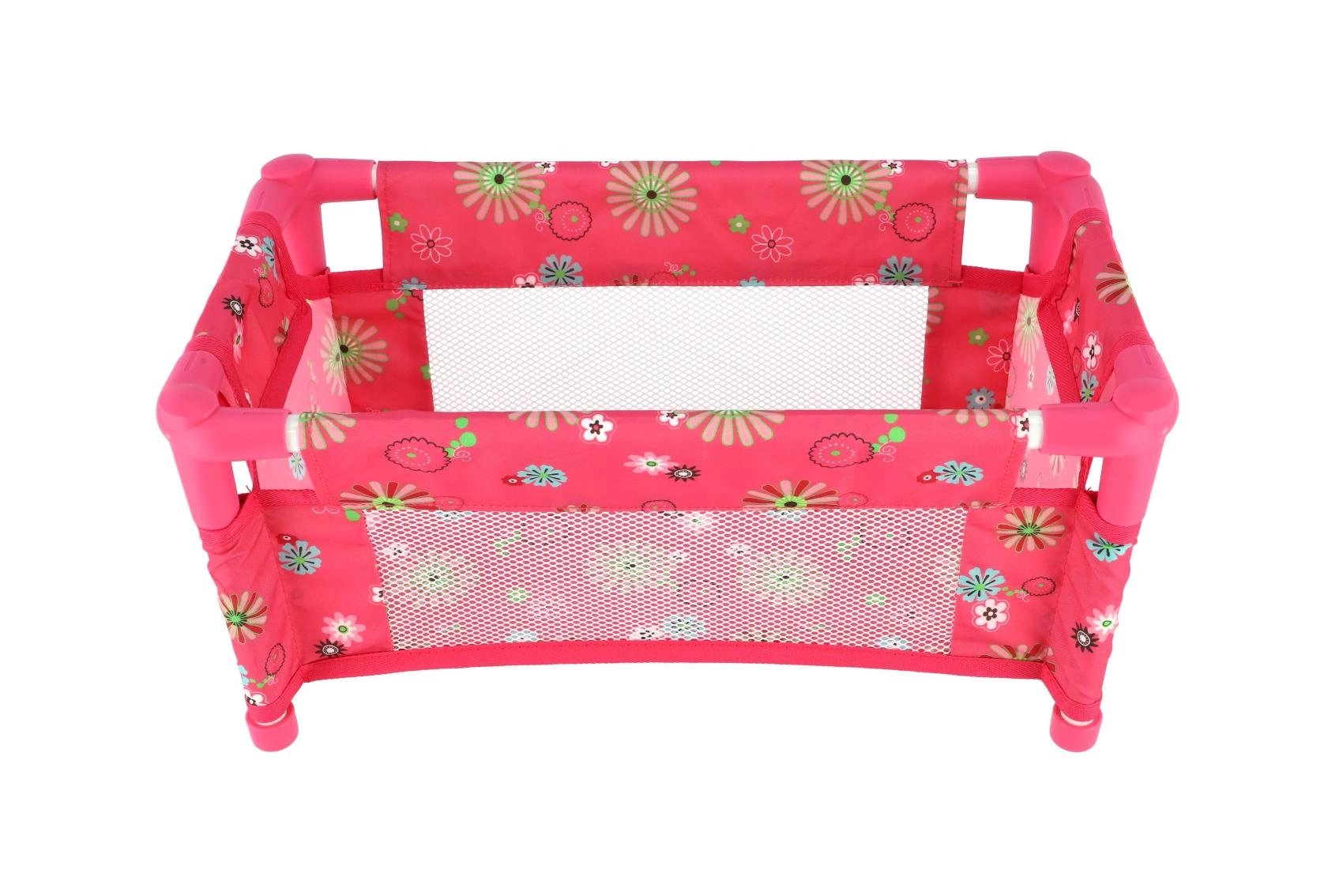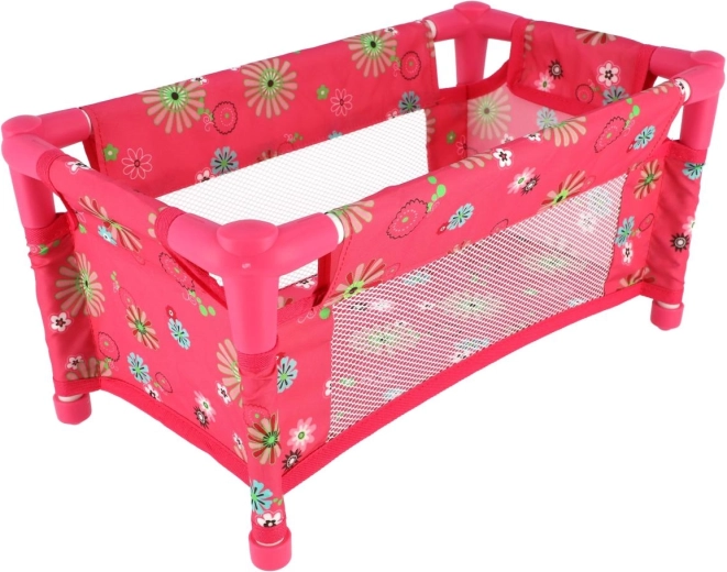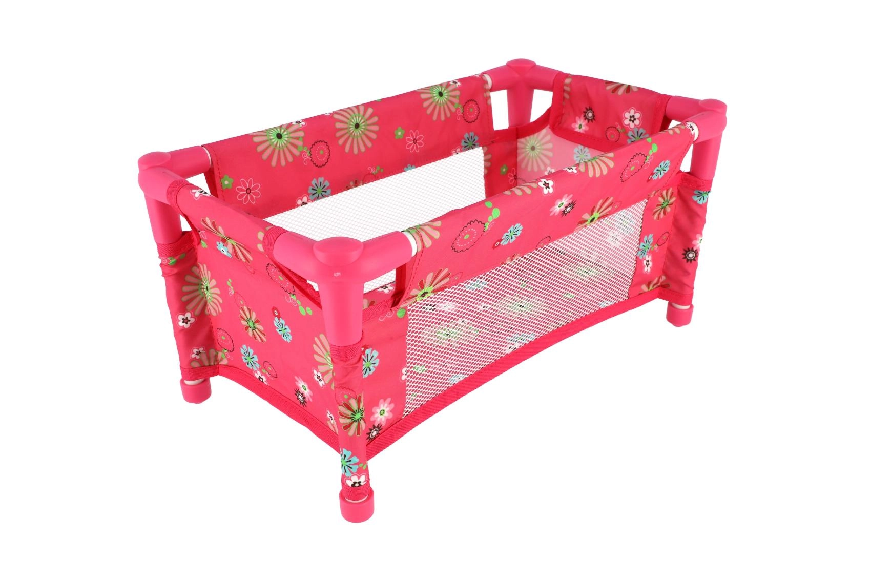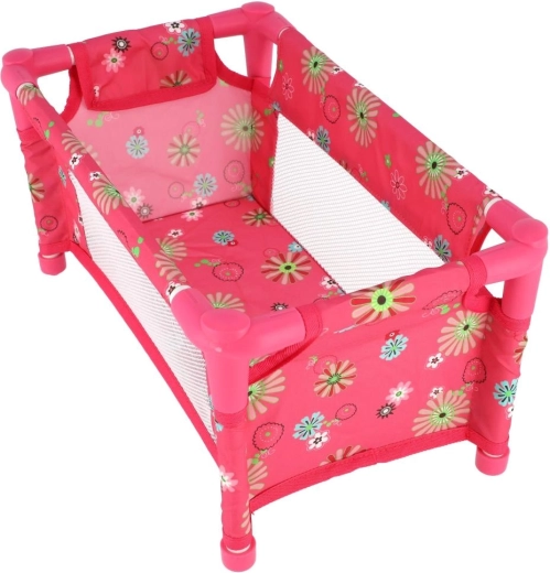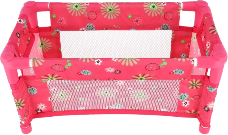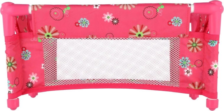 Robustná, pritom ľahká konštrukcia z trubiek a textilnými panelmi zvládne každodenné hranie. Postieľka je bez matraca (bez pevného dna), čo z nej robí bezpečný a flexibilný doplnok do detskej izbičky. Veselý kvetinový motív v ružových tónoch poteší každú malú mamičku.