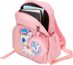 Tento batoh Jednorožec má niekoľko priehradiek a vreciek, čo zabezpečuje prehľadné usporiadanie všetkých potrebných vecí: