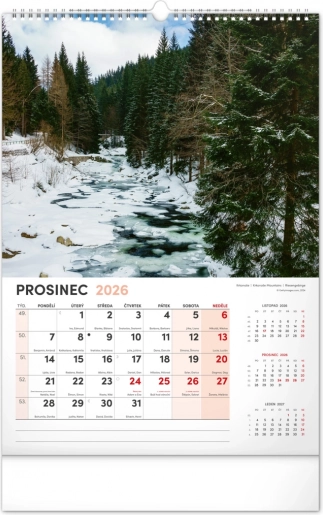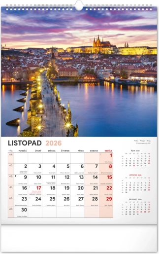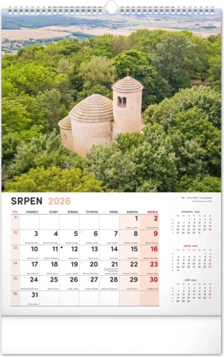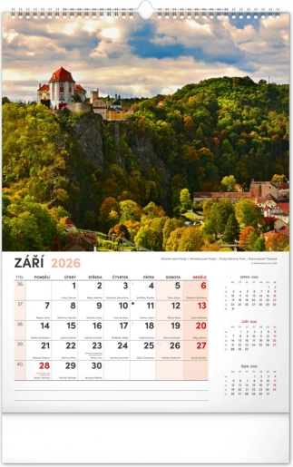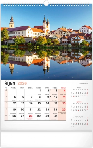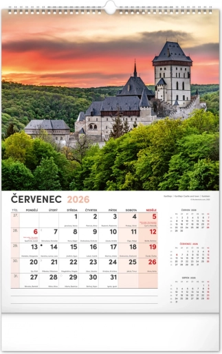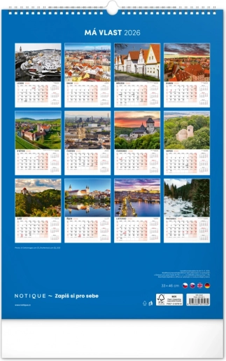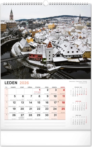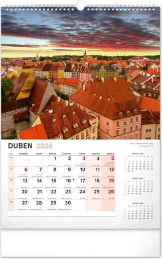 Objavte krásy Českej republiky s naším nástenným kalendárom pre rok 2026. Fotografie zachytávajú najkrajšie miesta, ako je Praha, Kutná Hora alebo Olomouc, vo formáte s výškovým kalendárom.