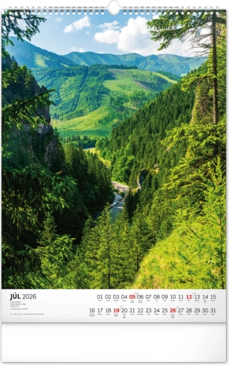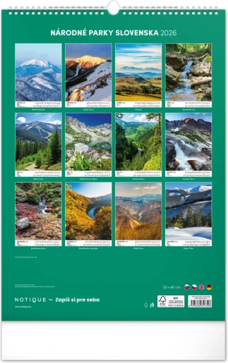 Tento kalendár na rok 2026 prináša to najlepšie, čo slovenská príroda ponúka. Obsahuje dvanásť krásnych, farebných fotografií, ktoré reprezentujú rôznorodosť a jedinečnosť slovenských národných parkov. Každý mesiac tak ponúka pohľad na inú časť tejto krásnej krajiny.
