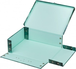 Praktický skladací kufrík ideálny pre výtvarnú výchovu alebo úschovu hračiek a drobností. Ľahko sa skladá a rozkladá vďaka dômyselnému systému patentiek a okovaným rohom.