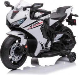 Detská elektrická motorka Honda CBR 1000RR je navrhnutá pre malých jazdcov, ktorí chcú zažiť vzrušenie z jazdy na motorke. Tento model v elegantnej bielej farbe napodobňuje skutočnú motorku značky Honda a je vybavený realistickými prvkami, ako sú výfuk, zrkadlá a starostlivo spracované kolesá.