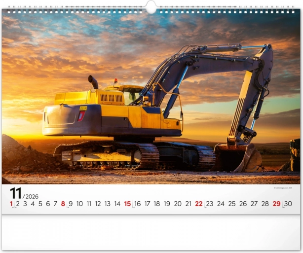 Predstavujeme vám kalendár určený pre tých, ktorí oceňujú silu a majestátnosť stavebných strojov. Každá stránka je venovaná jednému z týchto strojov, ktoré vás uchvátia svojím detailným spracovaním a vysokou kvalitou fotografie.