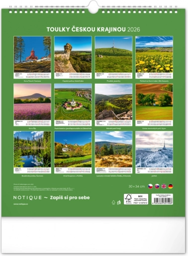 Prejdite sa krásami Českej republiky s kalendárom, ktorý vás prevedie dvanástimi prírodnými zákutiami. Kalendár je vybavený jednoduchým kalendárom s českými menami a má praktický formát vhodný do každého interiéru.
