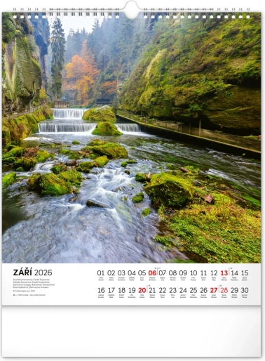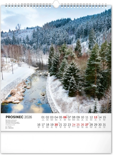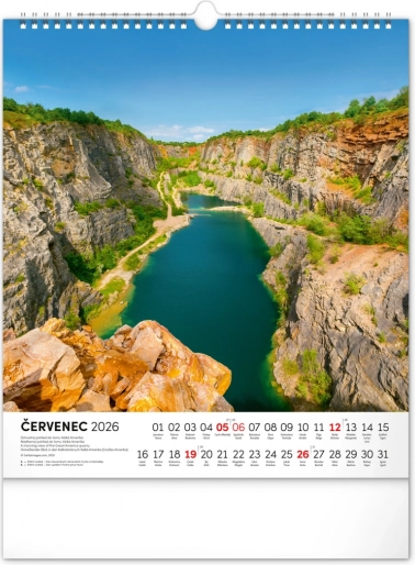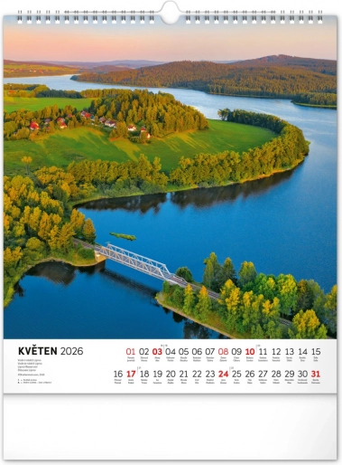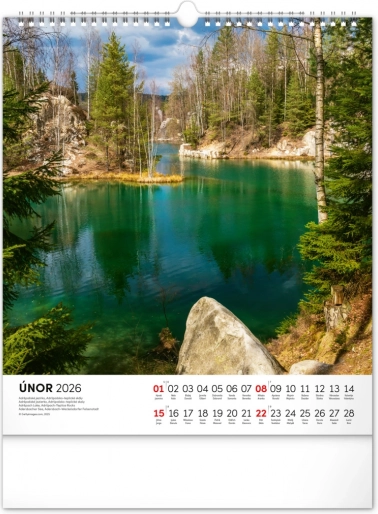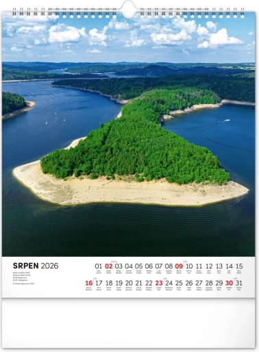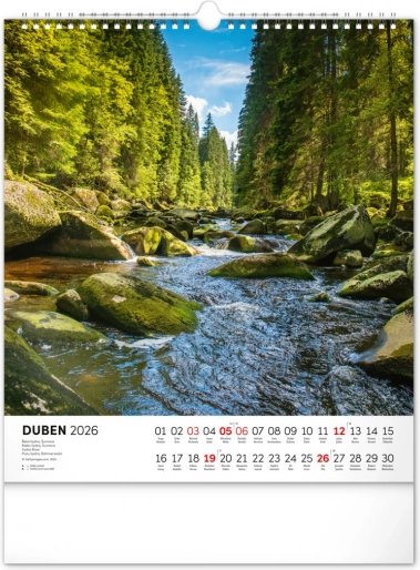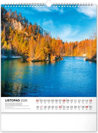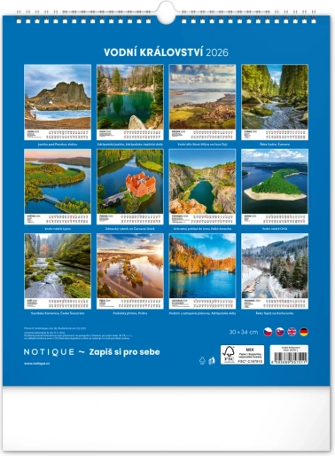 Nástenný kalendár Vodné kráľovstvo 2026 s 12 fotografiami českých vodných krás a slovenským kalendáriom. Formát 30 x 34 cm.