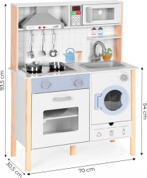 Kuchynka obsahuje mnoho užitočných funkcií: od svetelného a zvukového osvetlenia digestora, cez práčku na bielizeň až po otvárateľné kuchynské skrinky. Herný set zahŕňa tiež užitočné kuchynské nástroje, ktoré sú súčasťou balenia, aby boli deti okamžite pripravené hrať sa.