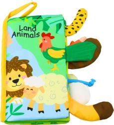 Doprajte svojmu bábätku bezpečné a podnetné prvky na rozvoj. Knižka je vyrobená z mäkkých materiálov, ktoré sú príjemné na dotyk a bezpečné pre jemnú pokožku dojčiat. Farebné ilustrácie zvieratiek, ako je lev alebo ovca, podnecujú k učeniu a hre.