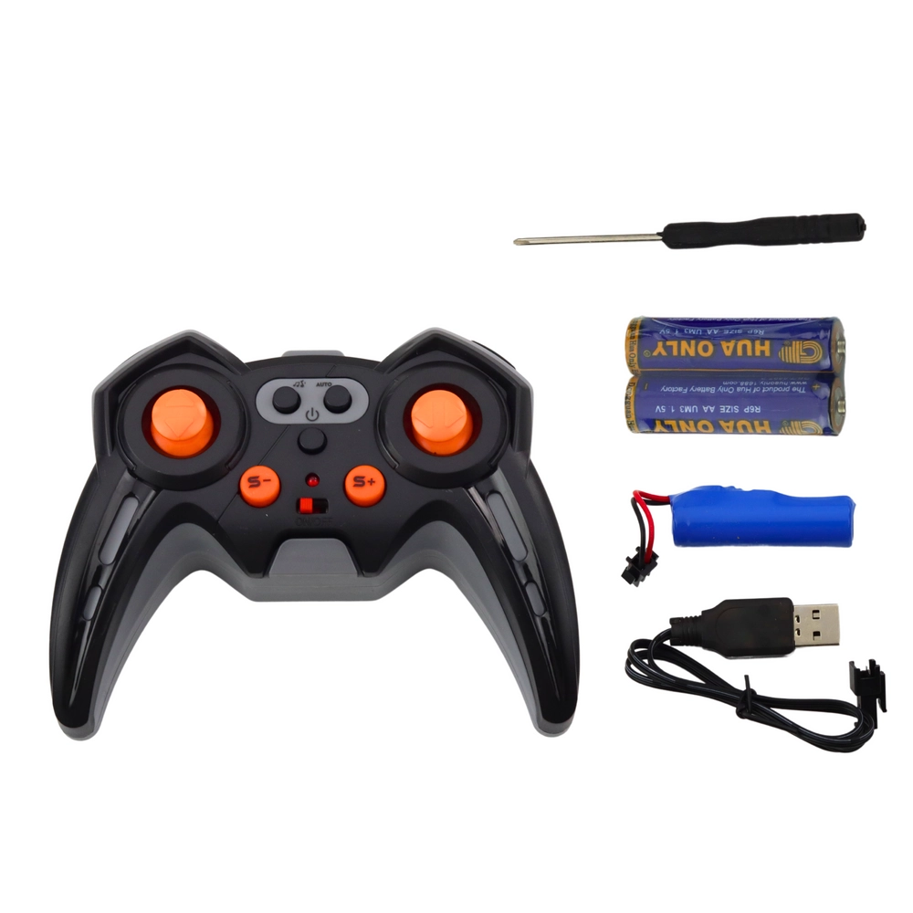 Riadenie je zabezpečené pohodlným diaľkovým ovládačom 2.4GHz, ktorý poskytuje plynulú kontrolu pohybu vpred, vzad, doprava a doľava, navyše umožňuje spustenie demo režimu, svetiel a zvukov. Intuitívne usporiadanie tlačidiel umožňuje dieťaťu samostatnú manipuláciu s vozidlom a učí základy orientácie v priestore.