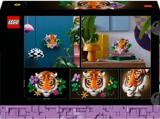 Vneste do interiéru farby a energiu s elegantnou stavebnicou pre dospelých LEGO Art Kolekcia zvierat – Tiger. Tento bezrámový 3D model spája dekoratívne umenie a prírodu: z kvetov a listov vystupuje výrazná tigria hlava so zreteľnými pruhmi a živými detailmi. Možno ho zavesiť na stenu alebo vystaviť na polici vďaka integrovanému stojanu. Polohovateľné kvety umožňujú variabilné aranžmány a ľahké zladenie s interiérom, prípadne rozšírenie o diely zo série LEGO Botanicals.