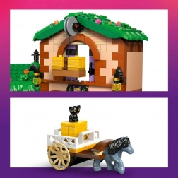 Objavte čaro vidieka s priateľmi z mestečka Heartlake. Stavebnica spája hranie so zvieratkami a detailne spracované prostredie: stajňa s podkrovím na spanie, útulný salónik, vonkajšie osvetlenie v tvare koní a veľký dvor na starostlivosť o poníky. Funkčný zdvihák sena ľahko presunie balíky na povalu alebo na voz, takže deti môžu vymýšľať realistické farmárske úlohy.