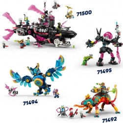 Set je nabitý detailmi: strelače kociek, otvárací kokpit a zameniteľné moduly, ktoré možno kombinovať s ďalšími sadami LEGO DREAMZzz. Súčasťou je päť minifigúrok – Mateo, Cooper, Pán Oz, One a D‑Shock – plus figúrka Alberta a dvaja kyberpavúci‑mozkožrúti pre skutočne dynamické scény.