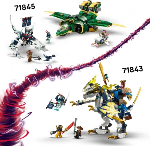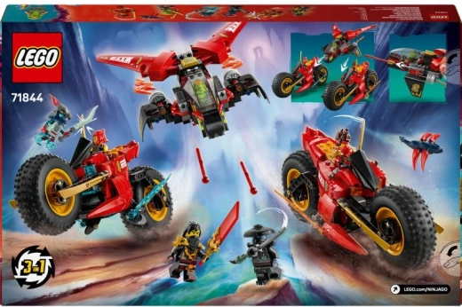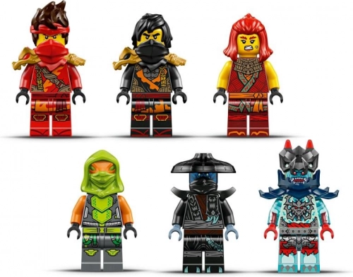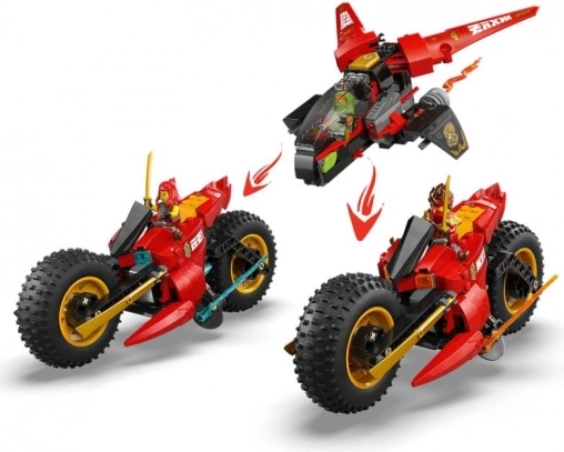 Tento detailný set prináša napínavú akciu na zemi aj vo vzduchu. Hlavné bojové vozidlo ninja 3 v 1 ľahko rozdelíte na tri samostatné stroje: agilnú motorku Kaia, ohnivú motorku Wyldfyre a aerodynamické lietadlo Fraka s dvoma strelačkami pre dynamickú hru. Skladanie aj prestavovanie je intuitívne a zábavné.