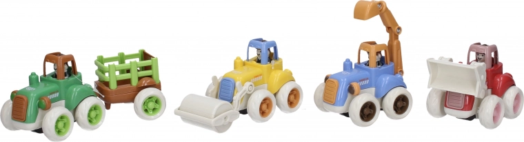 Auto pracovné stroje na zotrvačník pre zábavné a interaktívne hranie. Vyberte si zo štyroch rôznych modelov pre veľa zábavy.