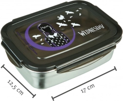 Obedový box s motívom Wednesday prináša nielen štýl, ale aj praktickosť. Vyrobený z nehrdzavejúcej ocele, zaisťuje dlhú životnosť a jednoduchú údržbu. Jeho kompaktné rozmery a nízka hmotnosť ho robia vhodným pre každodenné použitie v škole alebo na výletoch.
