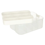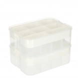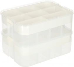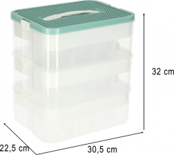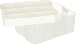 Organizér ponúka flexibilné možnosti skladovania vďaka svojim trom úrovniam, čo umožňuje udržať všetky vaše veci organizované a prehľadné. Je vyrobený z kvalitného plastu, ktorý zaručuje dlhú životnosť a odolnosť.