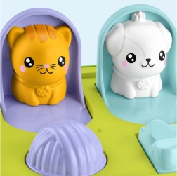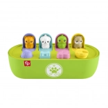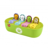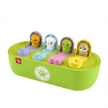 Táto farebná vyskakovacia hra s figúrkami zvieratiek ponúka deťom nekonečné objavy: každému okienku zodpovedá iný pohyb – stlačenie, posunutie, otočenie alebo prepnutie. Za každý správny pohyb príde odmena v podobe vyskočeného kamaráta, čo podporuje pochopenie príčiny a následku a trénuje koordináciu oko–ruka.