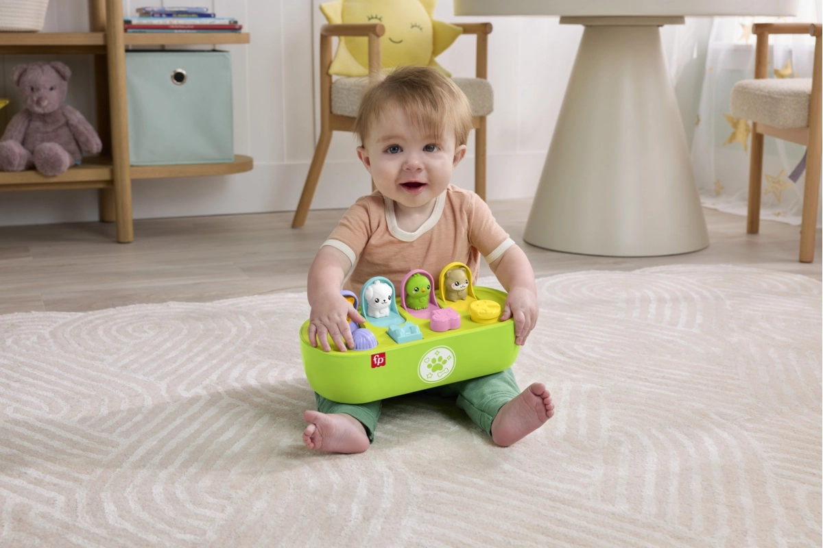 Objavte zábavnú interaktívnu hračku od Fisher‑Price, ktorá učí deti príčine a následku a rozvíja jemnú motoriku. Otoč, posuň, stlač alebo prepni – a z farebných okienok vyskočia rozkošné zvieratká. Ideálne pre deti od 9 mesiacov, s ľahko uchopiteľnými prvkami a odolným vyhotovením.