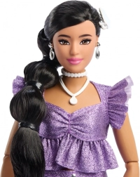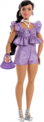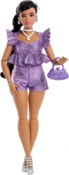 Štýlová bábika Barbie prichádza v párty outfite s trblietavým fialovým topom a šortkami, doplnená šperkami a kabelkou. Má plne ohybné a kĺbové telo na realistické pózovanie, detailne spracovaný vzhľad a množstvo módnych doplnkov pre kreatívne príbehy a obliekanie.