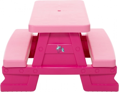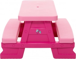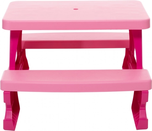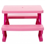 Tento detský piknikový stôl je vyrobený z výrazného ružového plastu, ktorý nielen vyzerá štýlovo, ale aj ľahko pútajú pozornosť detí.