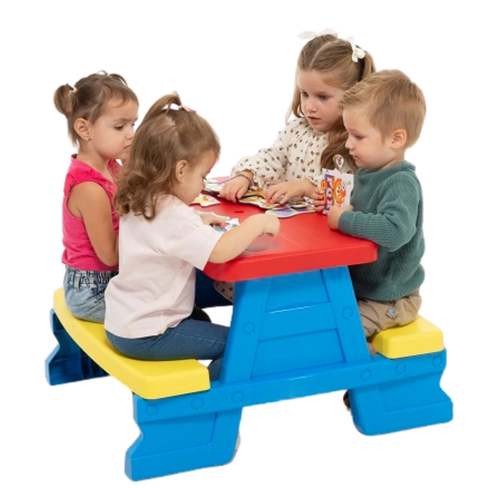 Živé farby robia tento stolík obzvlášť atraktívnym pre deti a podporujú ich k vonkajším aktivitám.