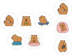 Urobte radosť vašim deťom s naším nálepkovým setom s kapybarou. Sada ponúka 500 jedinečných nálepiek predstavujúcich kapybary v rôznych pózach, ako je kapybara na skateboarde, meditujúca kapybara či kapybara s fotoaparátom. Vďaka priemeru 2,5 cm sú nálepky ideálne pre dekoráciu rôznych povrchov, či už ide o notebooky, diáre či darčekové balenia.