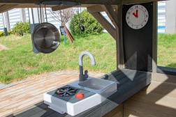 Váš malý kuchár alebo kuchárka si zamiluje kuchynský kút záhradného domčeka Vašek, kde sa môže predviesť svojimi schopnosťami. Domček ponúka: