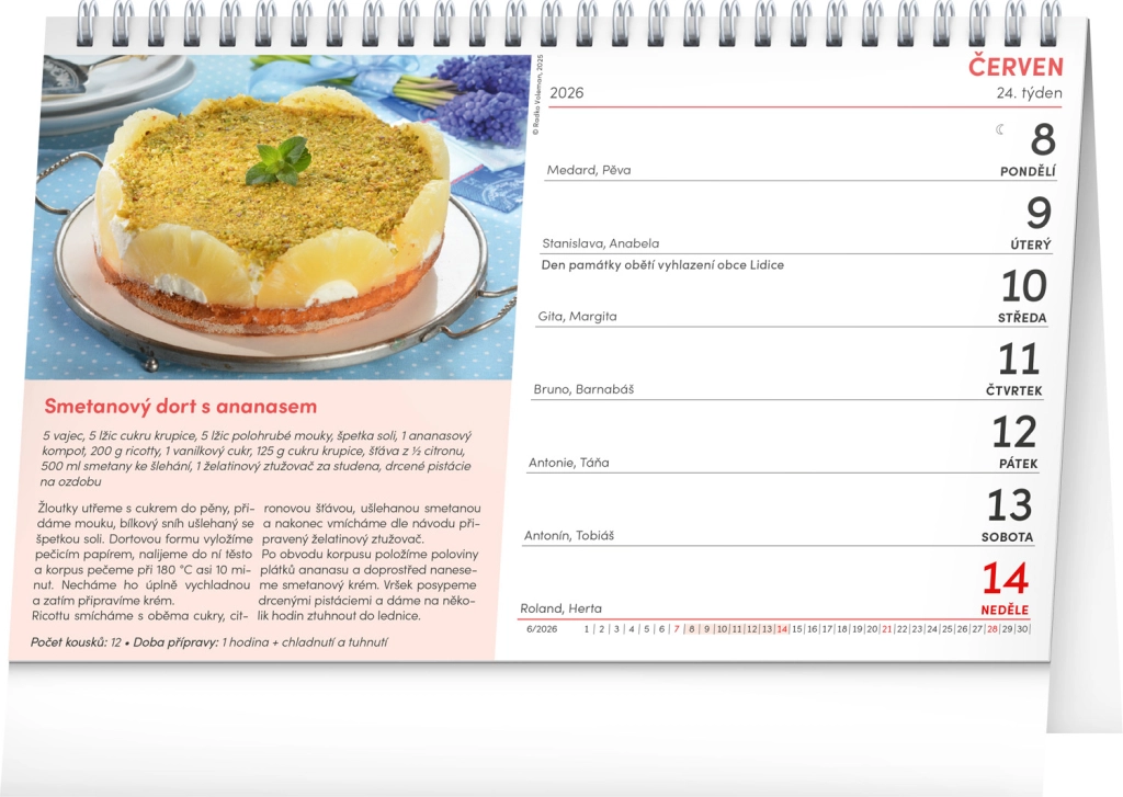 Stolový kalendár Sladké Recepty 2026 je ideálnym riešením pre milovníkov sladkých pokrmov. Každý týždeň prináša nový recept s krásnou fotografiou a ponúka priestor pre vaše poznámky.