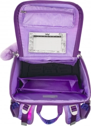 Školský peračník je jednoposchodový s dvoma chlopňami a značkovým zipsom YKK. Disponuje kapsičkou na drobnosti a okienkom na rozvrh. Pevné gumičky v peračníku sú vhodné pre trojhranné pastelky a fixky.