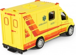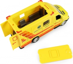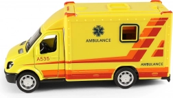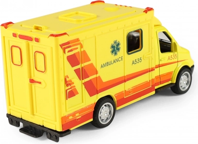 Prvotriedna detská sanitka v nápadnej žltej farbe ponúka pevné spracovanie z kovu a odolného plastu. Vďaka pohonu na spätný zotrvačník ľahko vyráža do akcie – stačí natiahnuť a pustiť. Realistické detaily, potlače a priehľadné okná podporujú fantáziu a tematickú hru na záchranárov.
