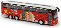Nastúp si do autobusu a cesta za dobrodružstvom môže začať! Mini kovový autobus s voľným chodom, otváracími dverami a kovovým telom s plastovými prvkami, ideálny pre všetkých milovníkov modelov.