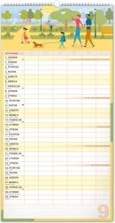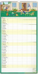 Veľký formát kalendára je ideálny pre celú rodinu. Slovenské kalendárium a samostatný plánovač aktivít pre až šesť členov domácnosti dopĺňajú veselé grafické motívy, ktoré pokryjú každé ročné obdobie.
