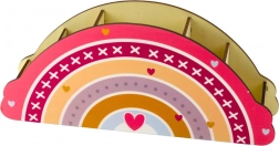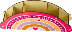 Drevený organizér na stôl pre deti v ružovej farbe s motívom dúhy