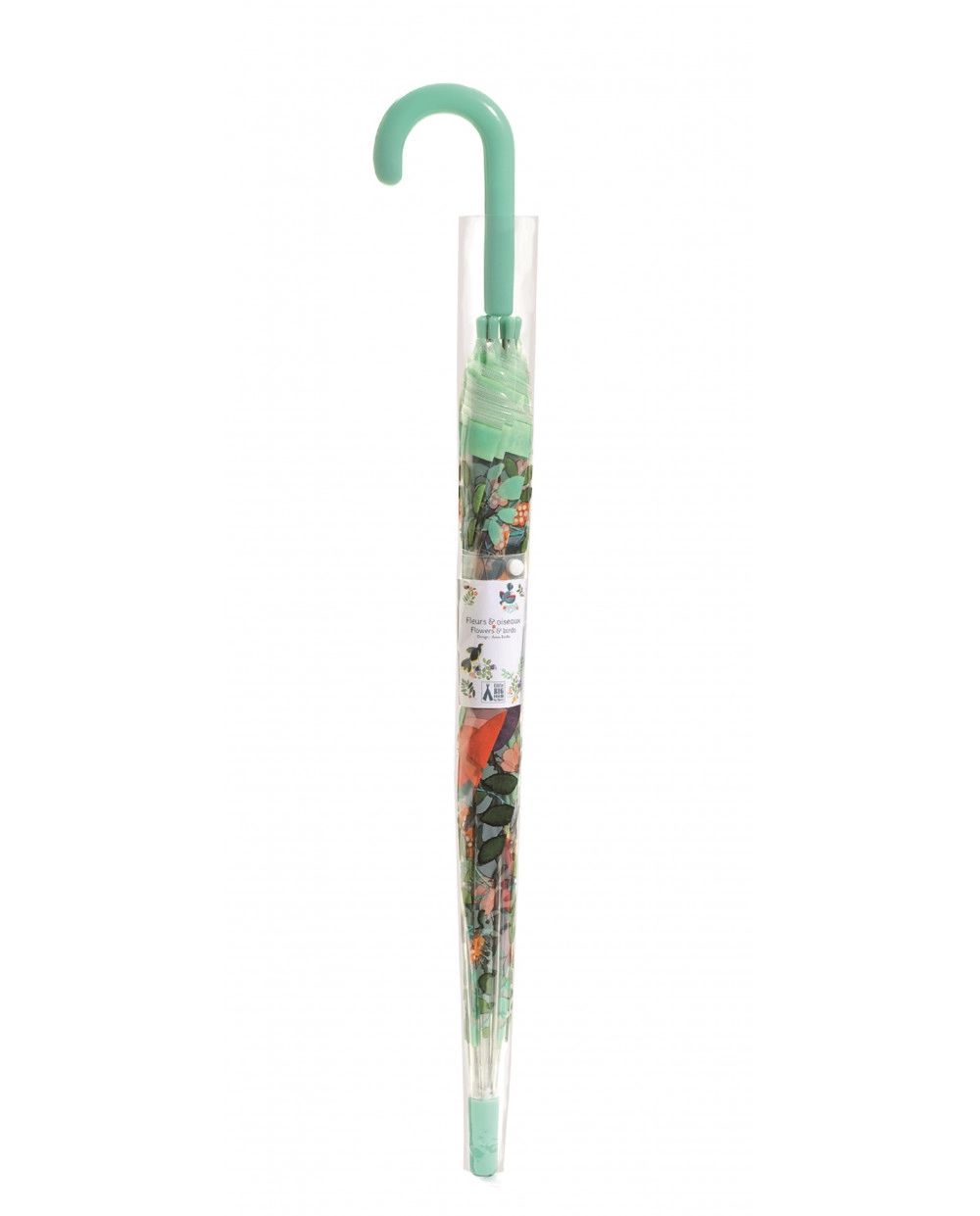 Štýlový detský dáždnik s motívom kvetov a vtákov poteší každého malého dobrodruha. Má pohodlnú zelenú rukoväť a bezpečné zapínanie na patentku, takže sa ľahko otvára aj zatvára. Vďaka priemeru 70 cm spoľahlivo ochráni pred dažďom a je ľahký a dobre prenosný.