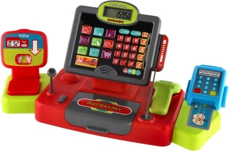 - Svetelné a zvukové efekty, funkčná kalkulačka, čítačka/slot na kreditnú kartu, váha na ovocie a zeleninu