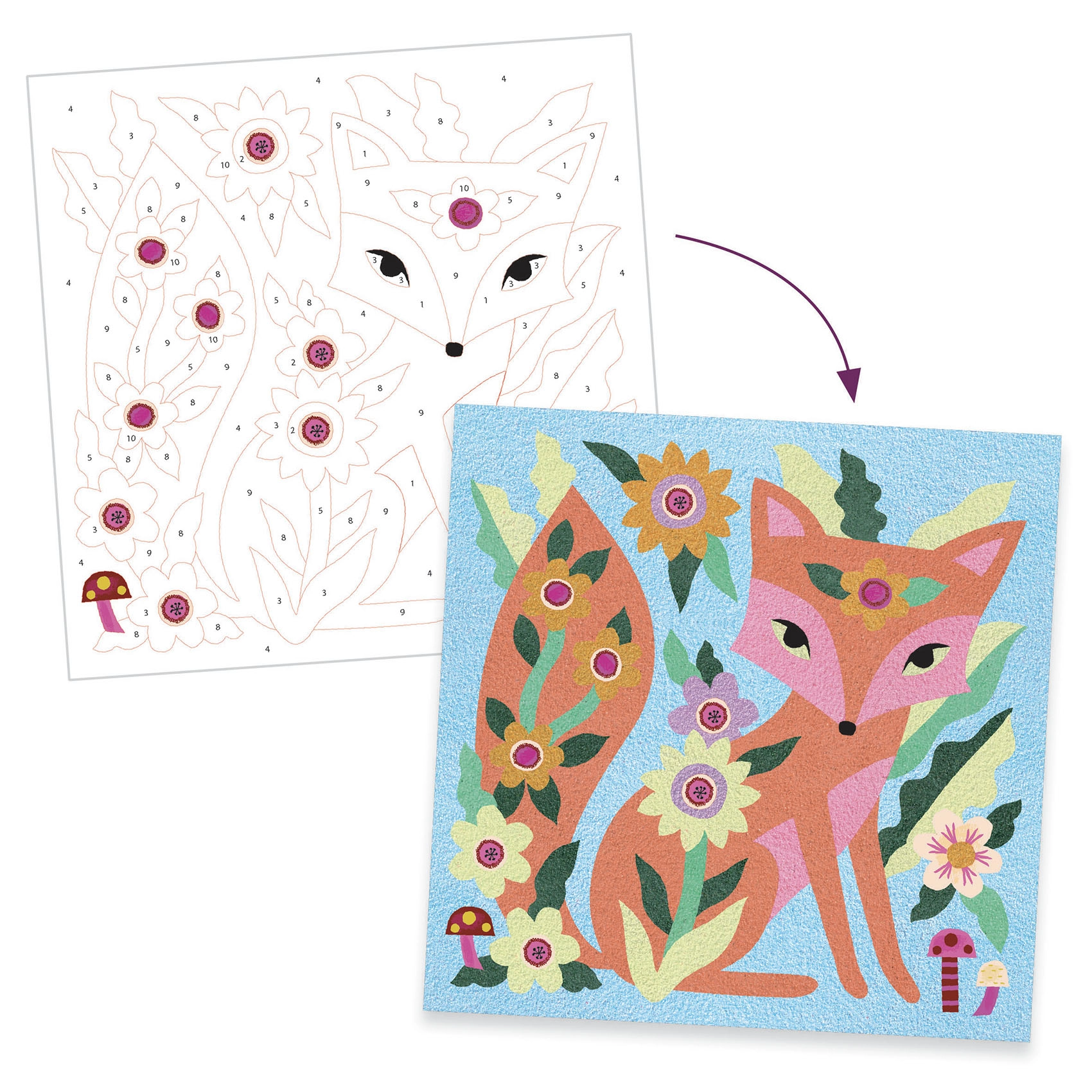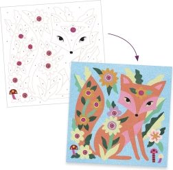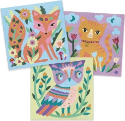 Táto obľúbená sada s pieskom prináša deťom jednoduchý spôsob, ako vytvárať nádherné ilustrácie nočných zvierat. Plochy na kartičkách sú samolepiace – stačí ich pomocou špachtle odokryť a posypať farebným pieskom. Prebytok jednoducho zosypete späť do krabičky otvorom v boxe. Fluorescenčné piesky zaistia, že motívy po zhasnutí svetla magicky ožijú.