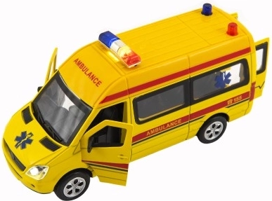 Táto detailne spracovaná ambulancia kombinuje pevný kovový podvozok s odolnými plastovými doplnkami a je ideálna na kreatívnu hru. Vďaka pohonu na spätné natiahnutie sa rozbehne bez potreby diaľkového ovládania, zatiaľ čo otváracie predné aj zadné dvere zvyšujú autentickosť a interaktivitu.