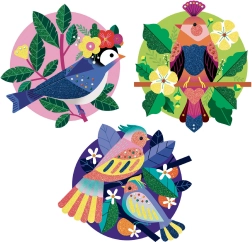 Sada Djeco Paradisio ponúka štyri okrúhle predtlačené karty, ktoré deti dotvoria pomocou trblietok a kamienkov. Vďaka očíslovaným plochám a prehľadnému návodu krok za krokom je tvorenie intuitívne a výsledok vždy pôsobivý. Hotové medailóny možno ľahko zavesiť pomocou malých háčikov na zadnej strane.