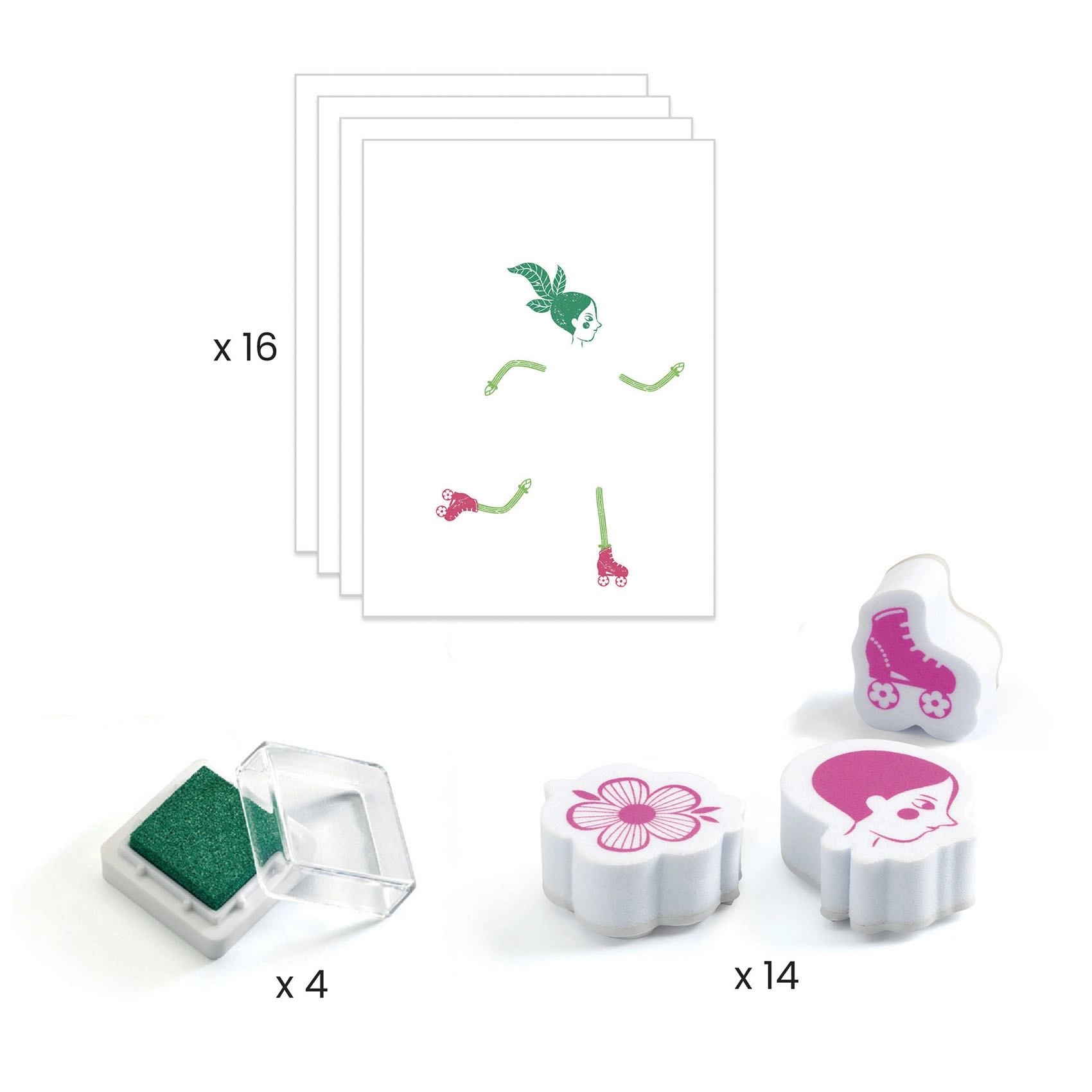 Sada pečiatok Kvetinová dievča DJECO ponúka jedinečný spôsob, ako vytvoriť osobité kvetinové dizajny. Ideálna pre kreatívne projektovanie a radosť z hry.